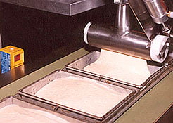 Hinds-Bock’s Positive Cut-Off Ribbon Spouts are ideal for high speed accurate spreading of products as well as depositing and filling applications. Custom spouts are used to match the spread width and length for the application. Hinds Bock servo pump fillers are extremely high speed, a single machine can run up to 160 units per minute depending on the product and application. Machines are available in single or multiple lane versions for a wide variety of products.